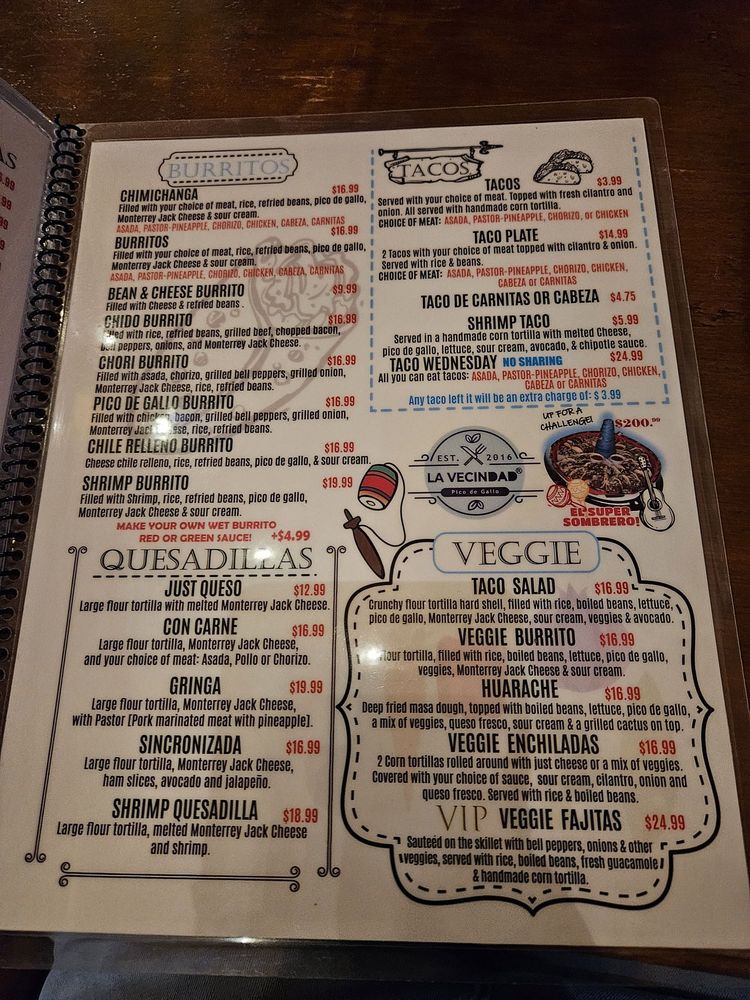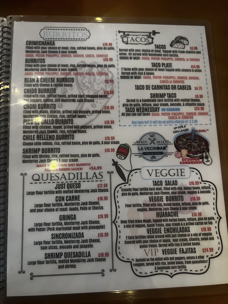 LA VECINDAD Menu (Update 2025)